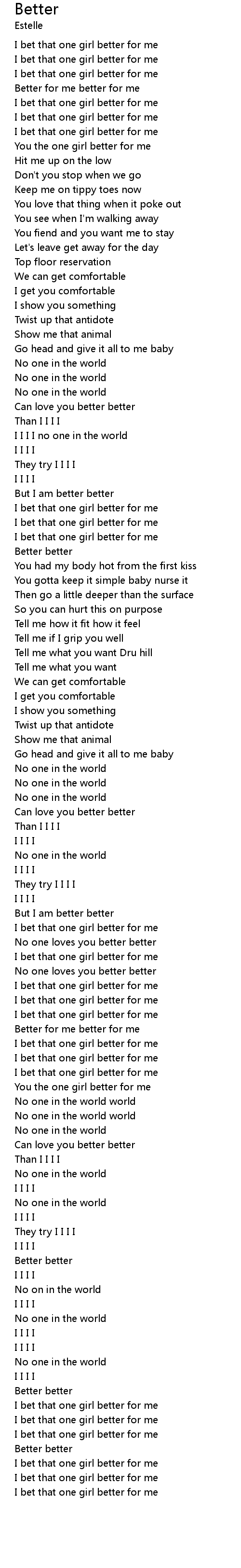 You the one girl better for me |