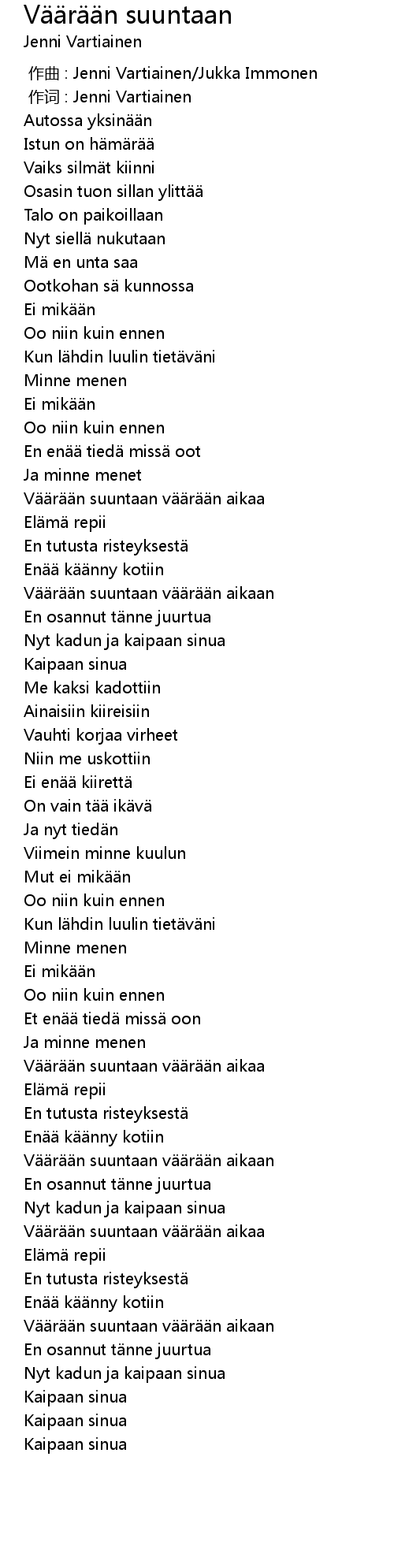 | [00:01.000] | zuò cí : Jenni Vartiainen |