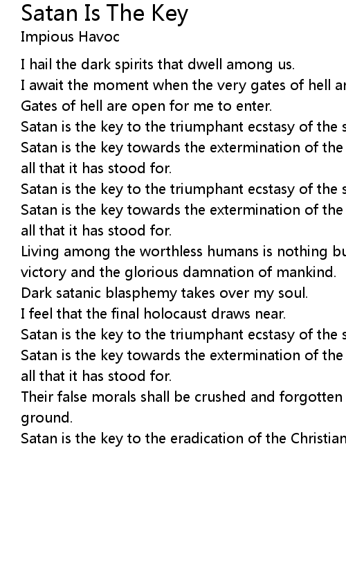 Satan is the key towards the extermination of the whole judeo-chistianity and all that it has stood for. |
