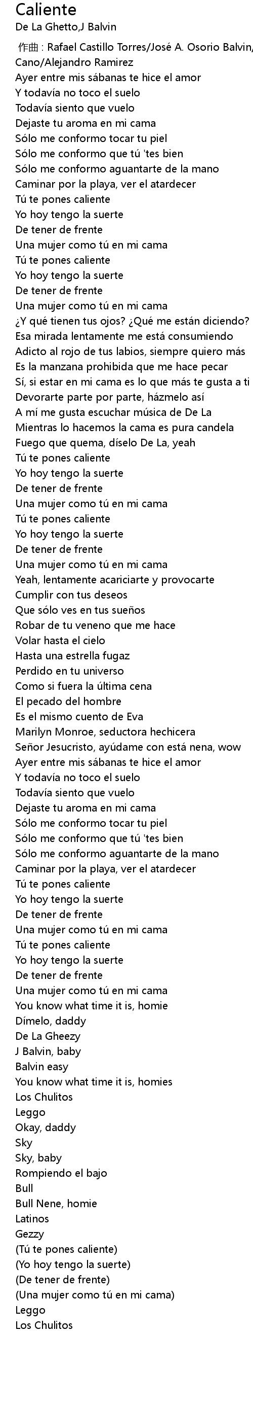 | [00:00.000] | 作曲 : Rafael Castillo Torres/José A. Osorio Balvin/Rene Cano/Alejandro Ramirez |