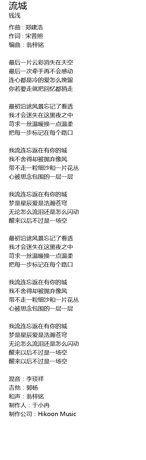 | wǒ liú lián wàng fǎn zài yǒu nǐ de chéng | |