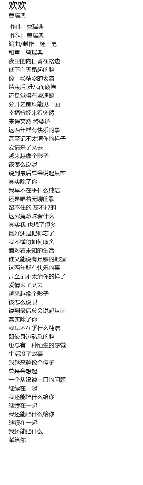 | [00:01.000] | 作词 : 曹瑞典 |