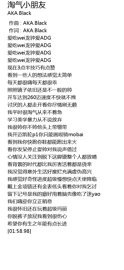 | [01:02.38] | 我开迈凯轮p1你只能画呗骑mobai |