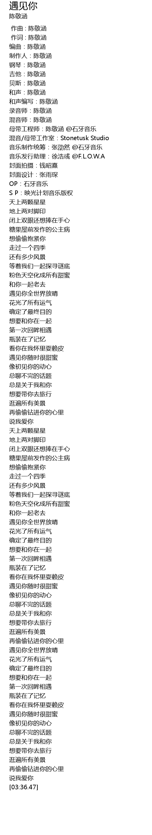 | [00:00.000] | 作曲 : 陈敬涵 |