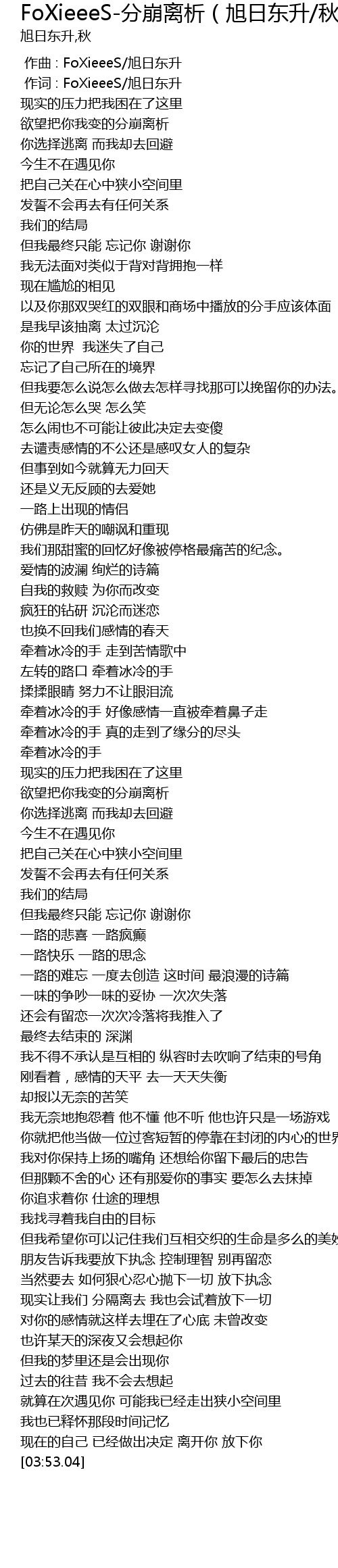 | [00:00.360] | 作词 : FoXieeeS/旭日东升 |
