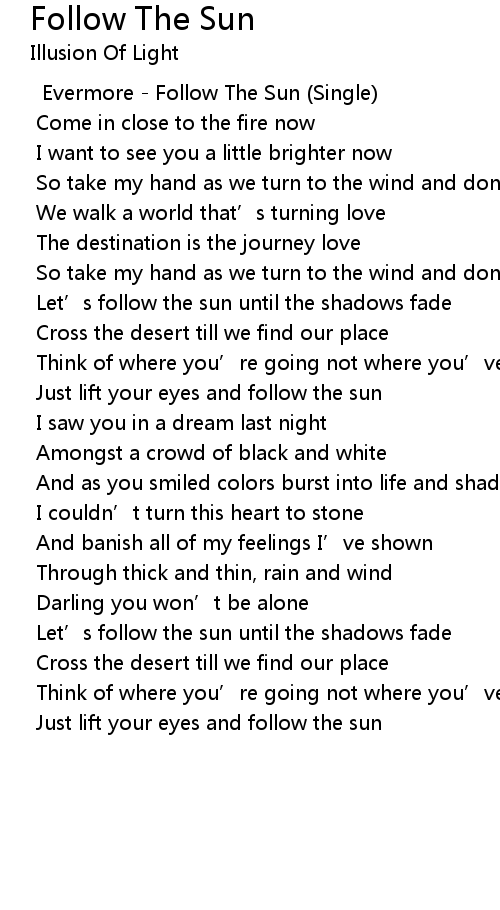 | Just lift your eyes and follow the sun | |