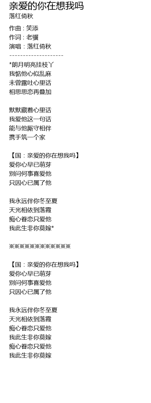 | guó: qīn ài de nǐ zài xiǎng wǒ ma | |