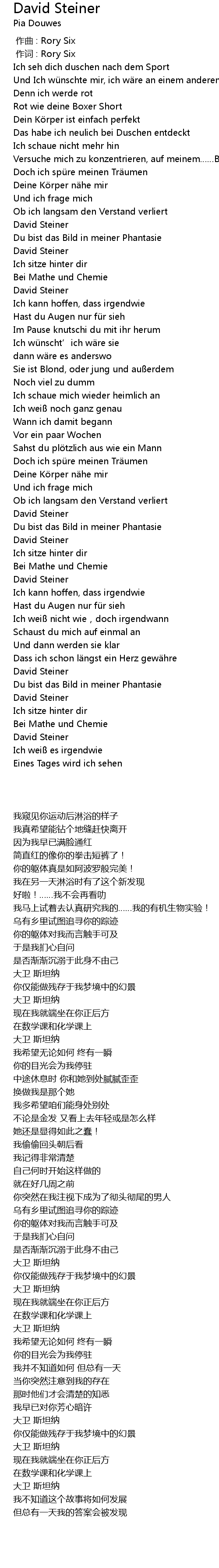 | [00:52.57] | Du bist das Bild in meiner Phantasie |