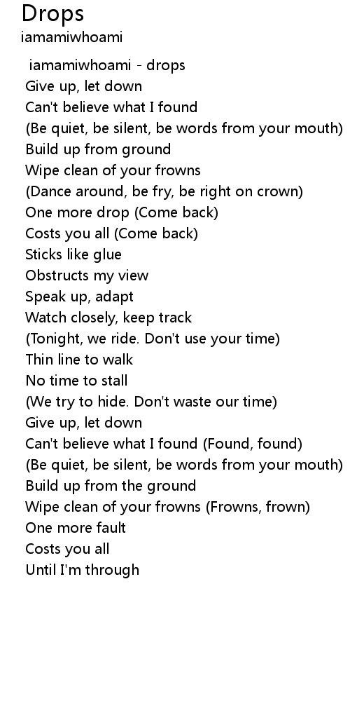One more drop (Come back) |
