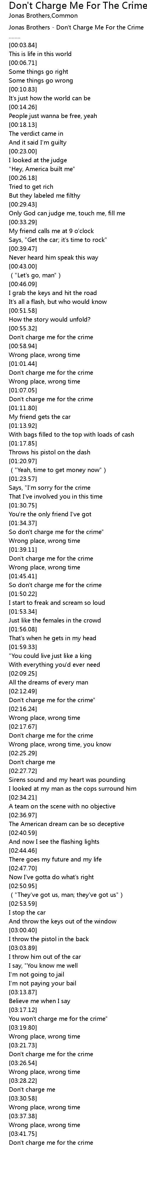| [00:00.41] | Jonas Brothers - Don't Charge Me For the Crime (feat. Common) |
