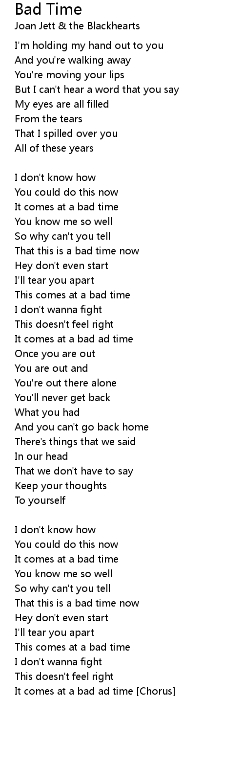 It comes at a bad ad time [Chorus] |