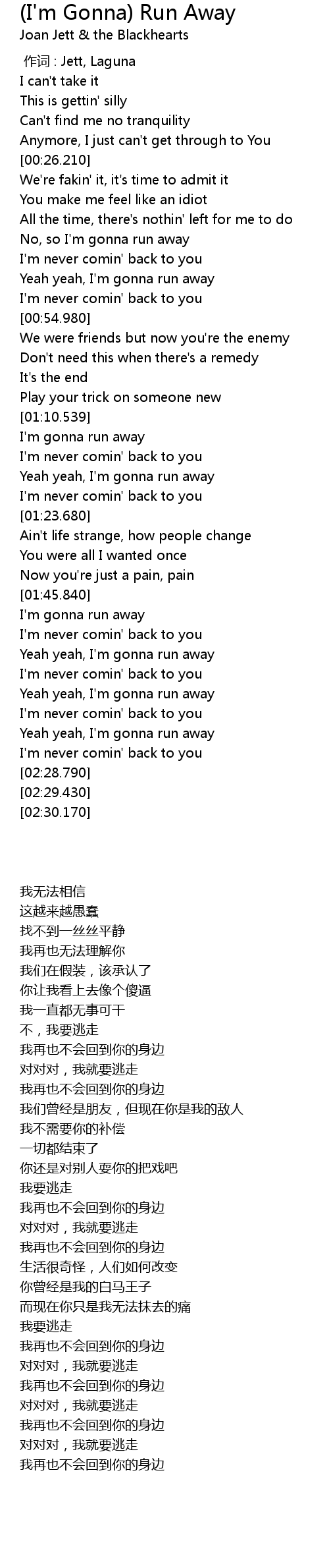 | [02:18.100] | Yeah yeah, I' m gonna run away |