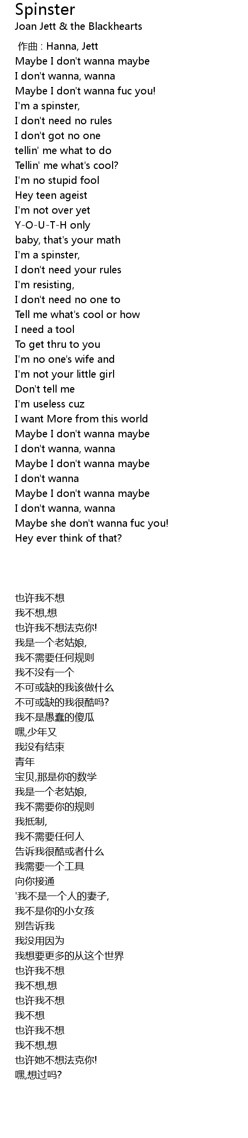 | Song | Spinster |