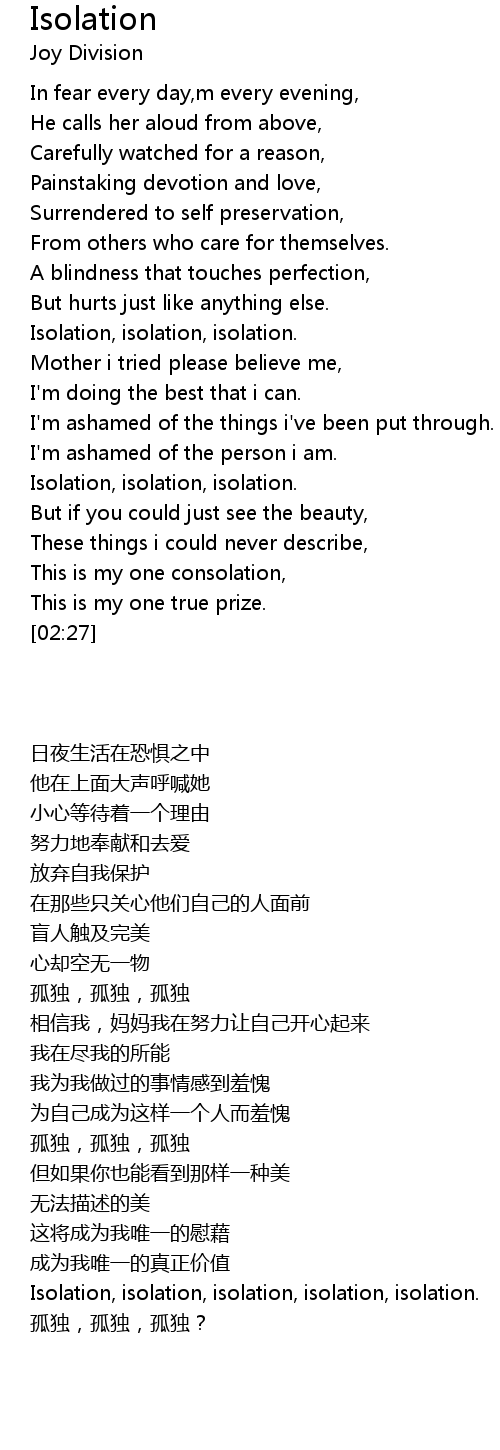 Isolation, isolation, isolation. |