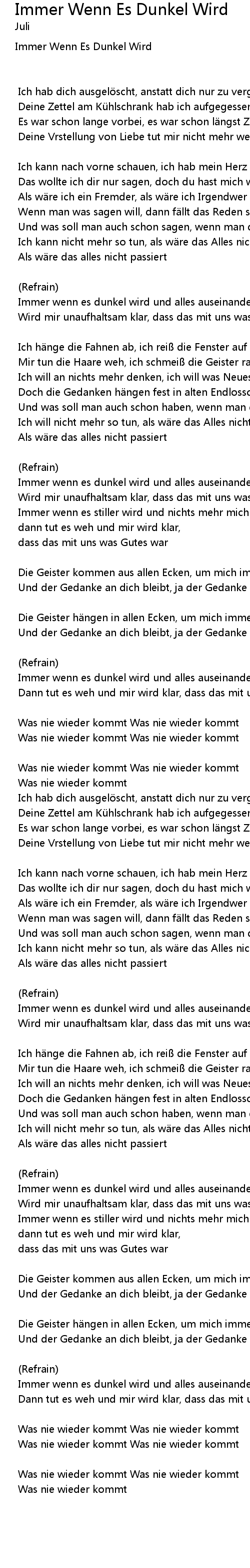 | Immer wenn es dunkel wird und alles auseinander fällt | |