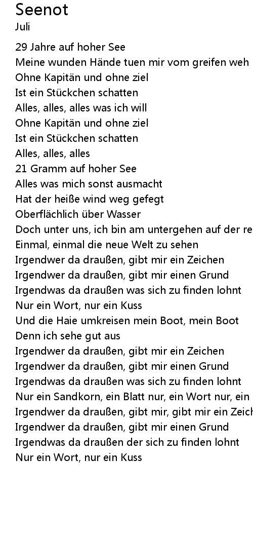 | Und die Haie umkreisen mein Boot, mein Boot | |