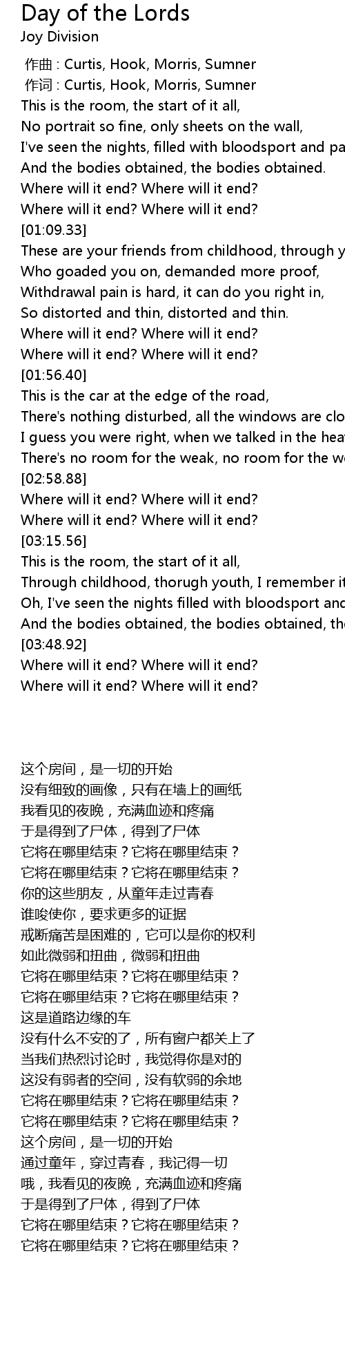 | [00:01.00] | 作词 : Curtis, Hook, Morris, Sumner |