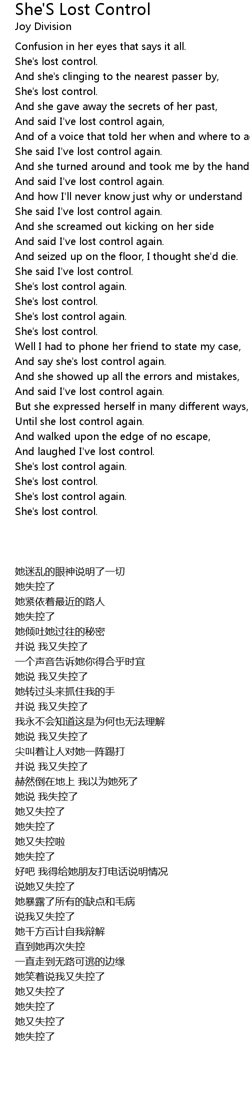 She said I've lost control again. |
