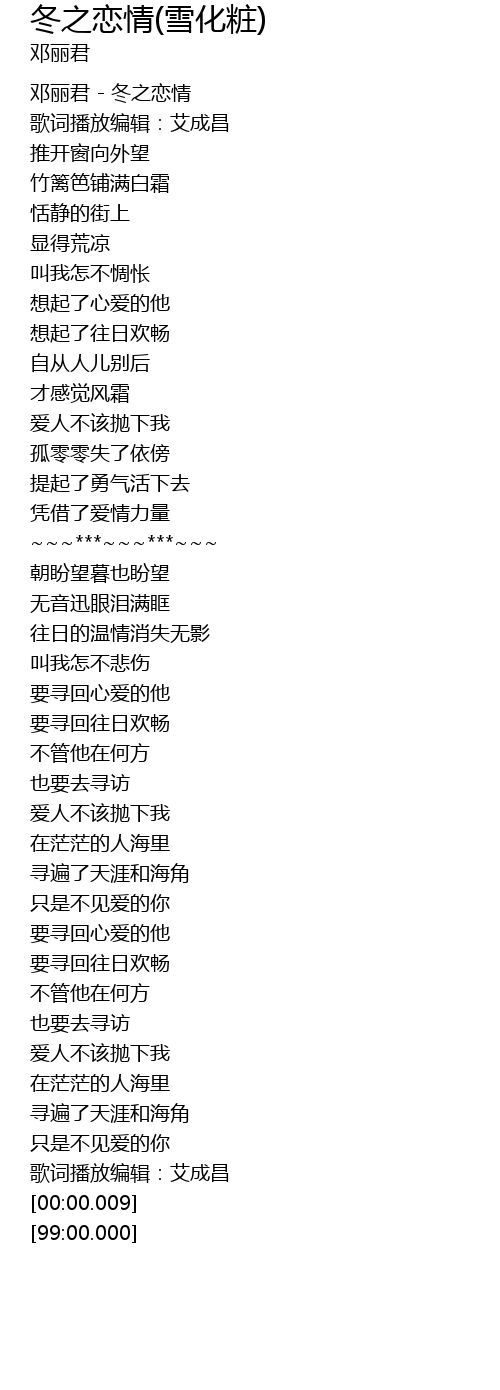 | [00:00.16] | 邓丽君 - 冬之恋情 |