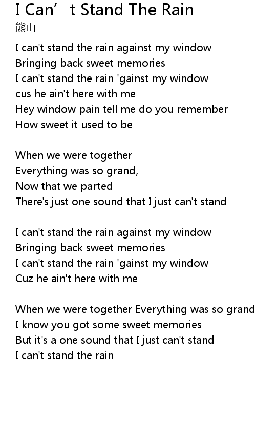 I Can’t Stand The Rain I Can' t Stand The Rain Lyrics