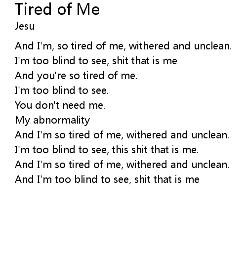 | And I'm, so tired of me, withered and unclean. | |