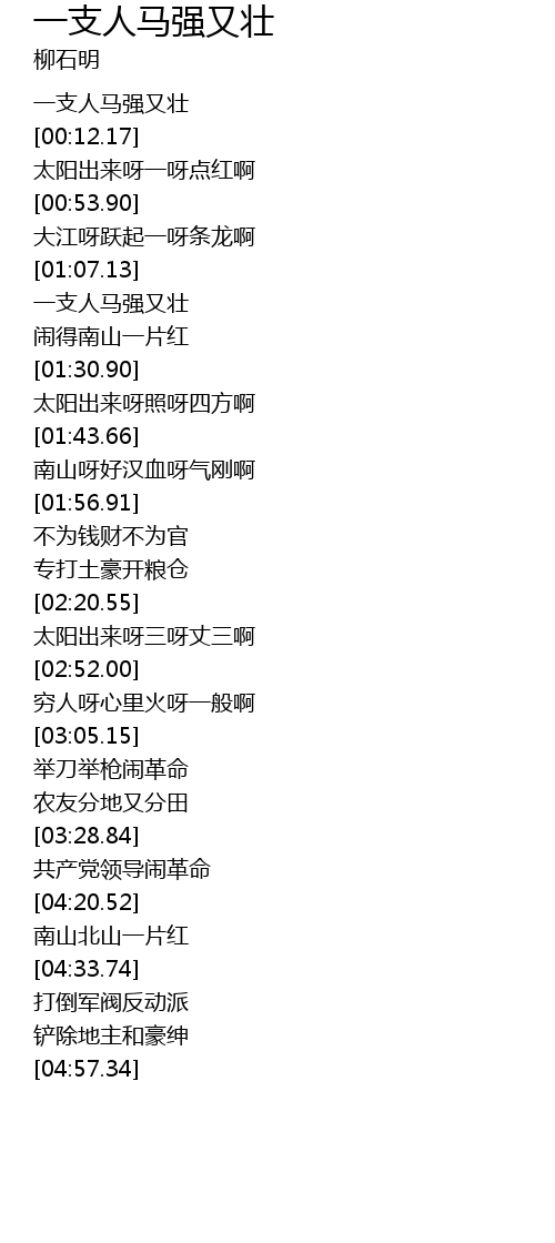 | [00:05.25] | yī zhī rén mǎ qiáng yòu zhuàng |