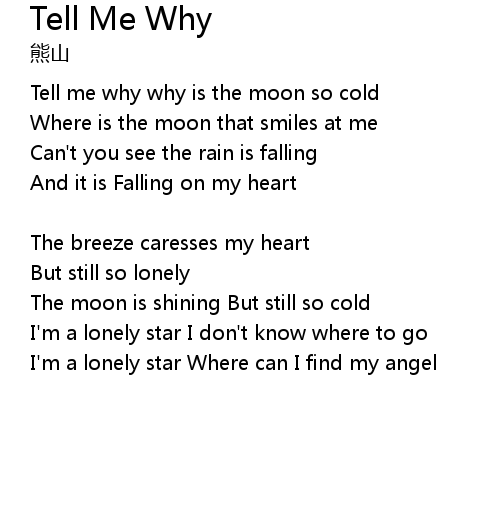 | Song | Tell Me Why |