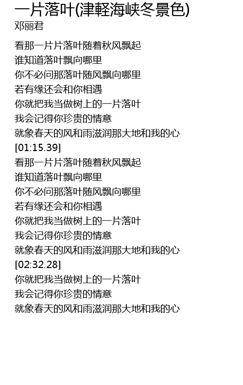 | [01:38.59] | 看那一片片落叶随着秋风飘起 |