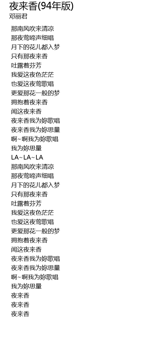 | [01:06.890] | 夜来香我为妳歌唱 |