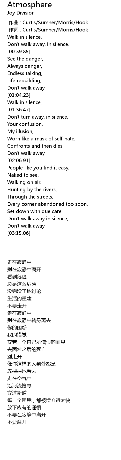 | [00:25.93] | Walk in silence, |