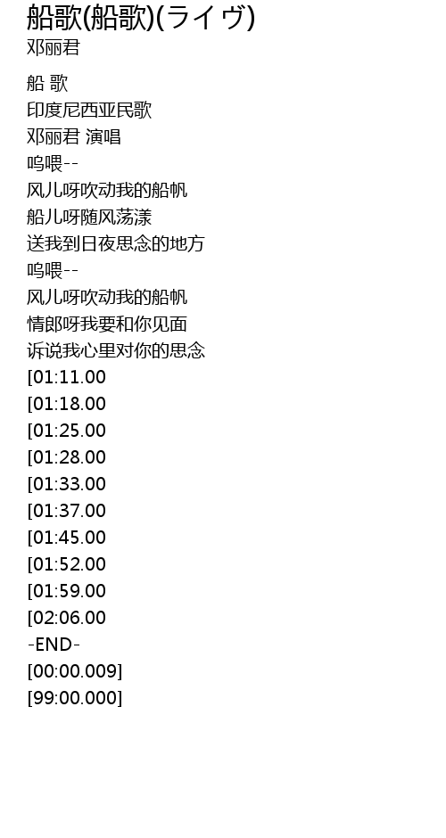 | [03:03.00][01:59.00] | 船儿呀随风荡漾 |