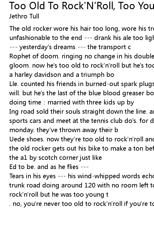 | . no, you' re never too old to rock' n' roll if you' re too young to die. |