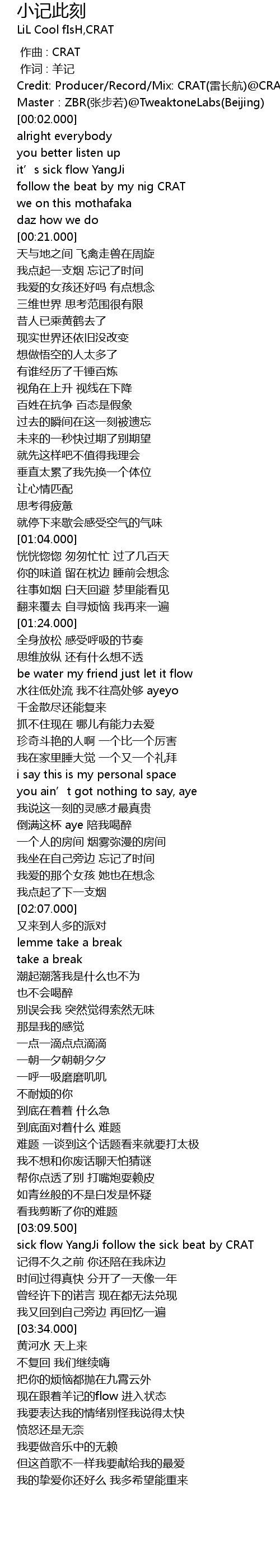 | [03:10.000] | sick flow YangJi follow the sick beat by CRAT |
