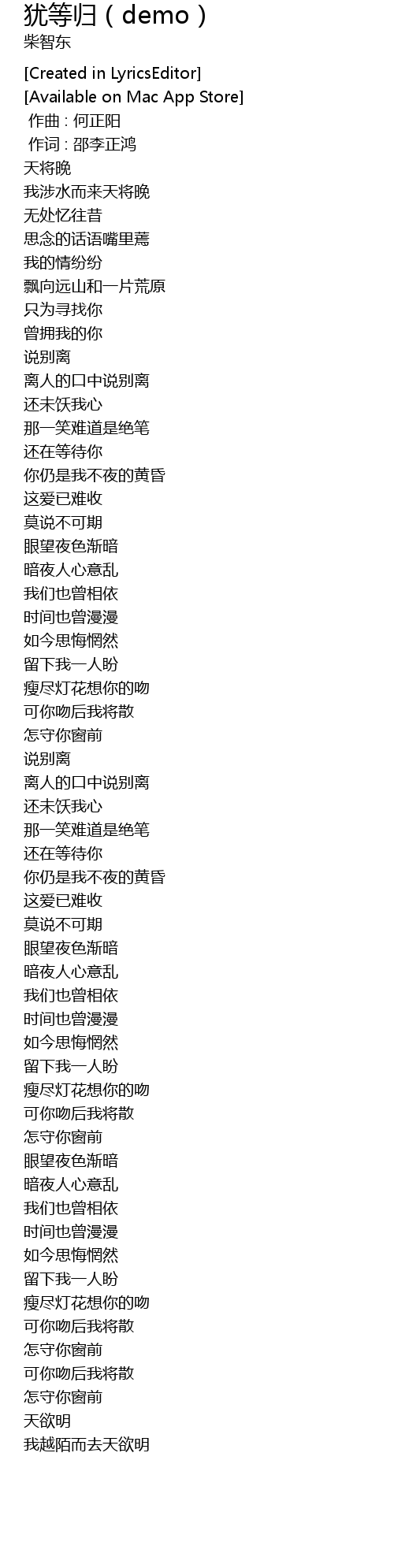 | [02:37.139] | 你仍是我不夜的黄昏 |