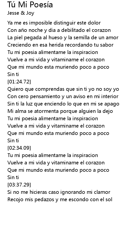 | [03:00.73] | Tu mi poesia alimentame la inspiracion |