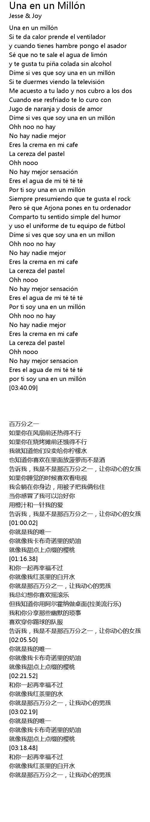 | [00:53.34] | Di me si ves que soy una en un millo n |