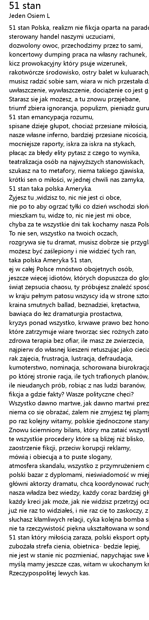 | 51 stan Polska, realizm nie fikcja oparta na paradoksach, | |