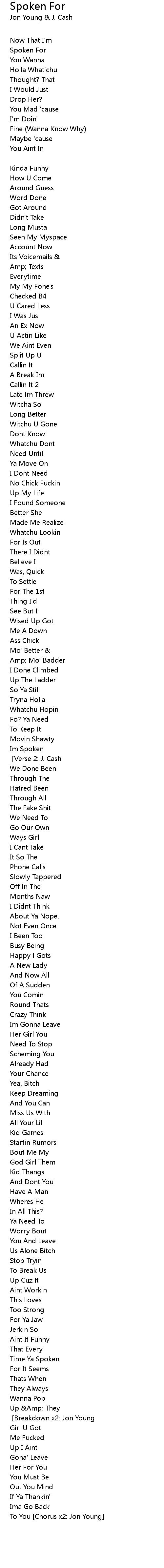 Fo [Chorus x2: Jon Young] [Verse 2: J. Cash] |