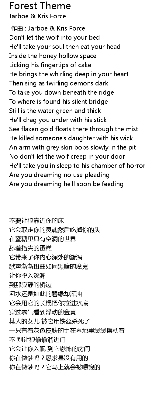 | [01:42.000] | No don't let the wolf creep in your door |
