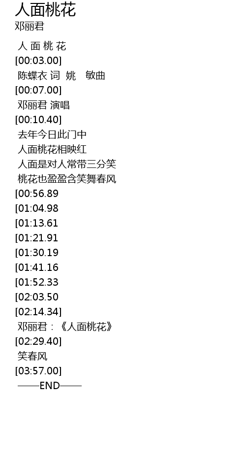 | [02:16.21] | 邓丽君:《人面桃花》 |