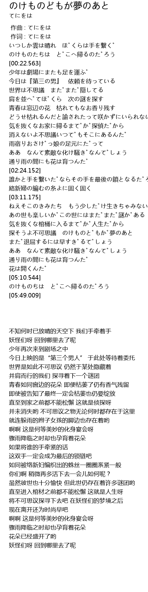 | [04:42.874] | 探そうよ不可思議 のけものどもが夢のあと |