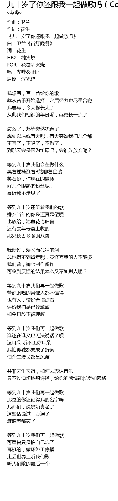 | 等到九十岁我们再一起做歌, | |