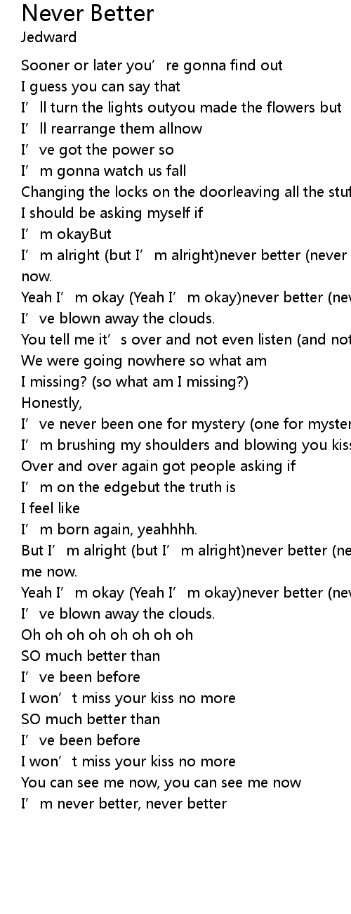 | Yeah I’m okay (Yeah I’m okay)never better (never better) | |