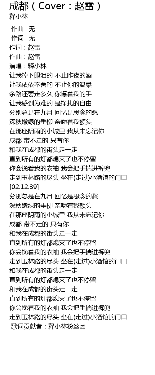 | [03:49.62] | 和我在成都的街头走一走 |