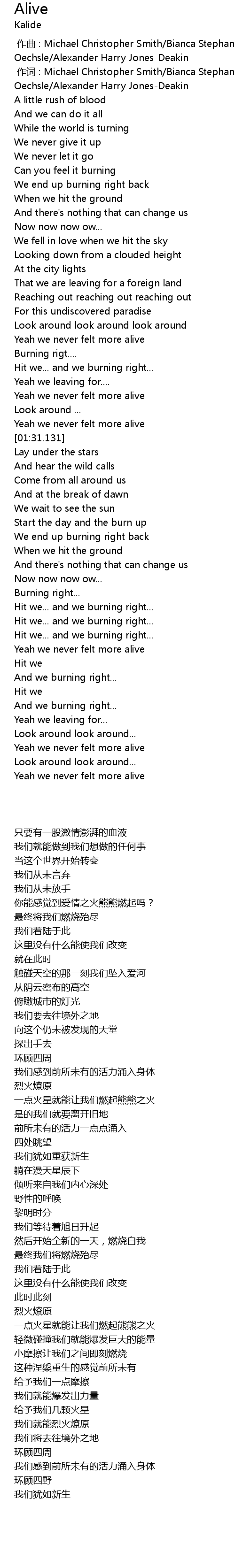 | [01:28.982] | Yeah we never felt more alive |