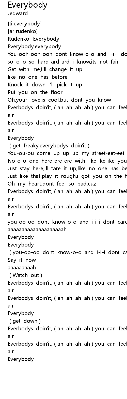 | [02:11.341] | Everbodys doin' it, ah ah ah ah you can feel it in the air |