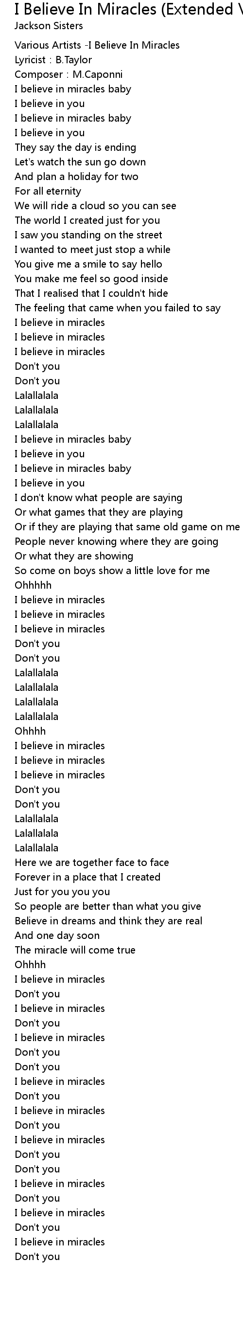| [00:00.41] | Various Artists I Believe In Miracles |