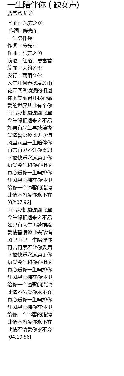 | [01:19.36] | 风里雨里一生陪伴你 |