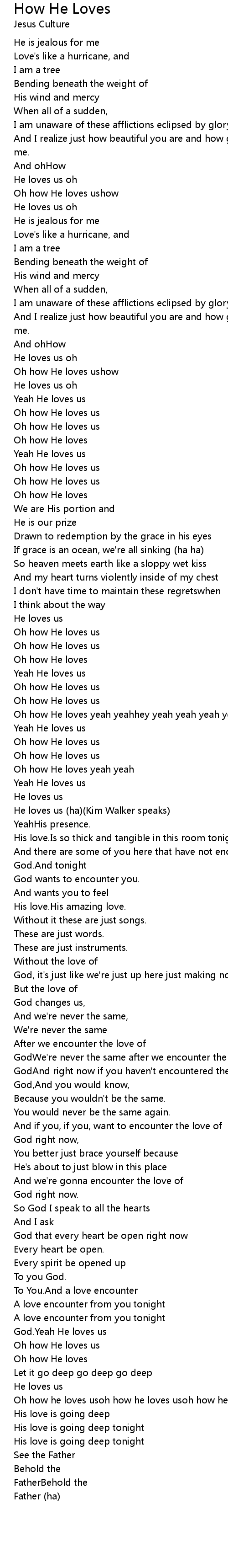 Oh how He loves yeah yeahhey yeah yeah yeah yeah yeah yeah yeah yeah |