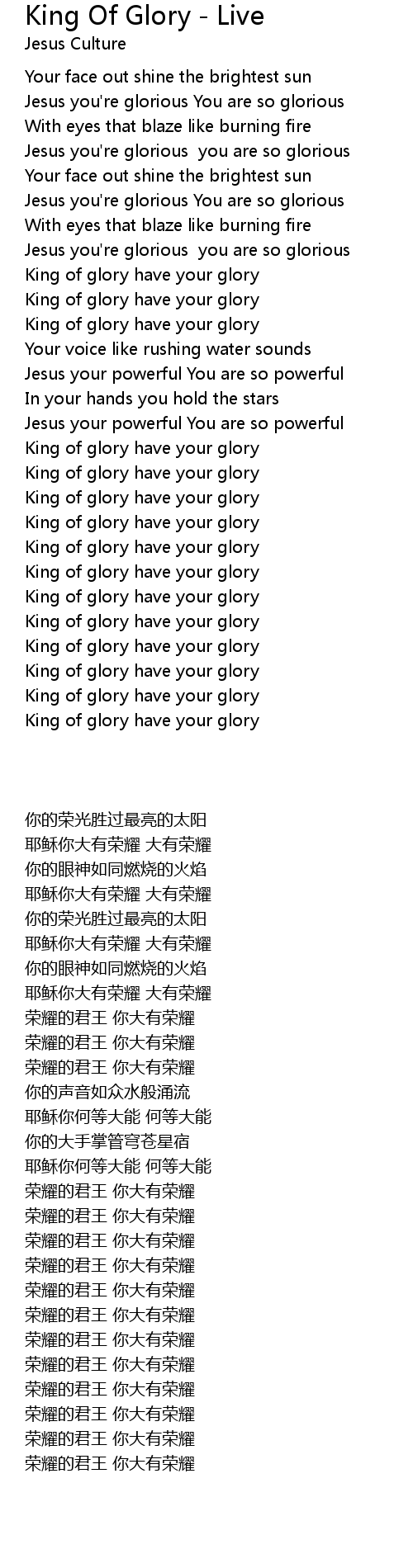 King of glory have your glory |